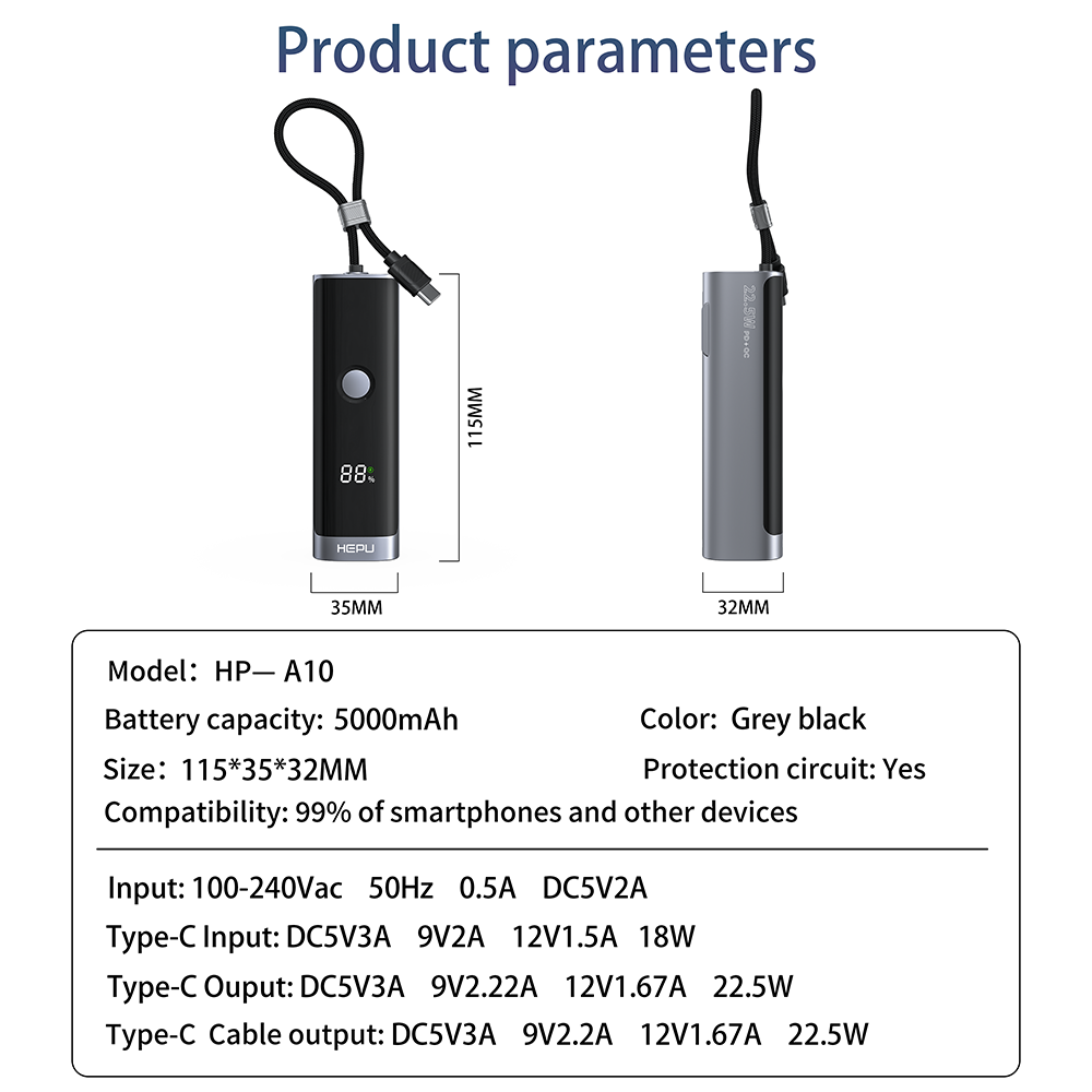 HEPU--Wired charging treasure--HP-A10--10000mAh