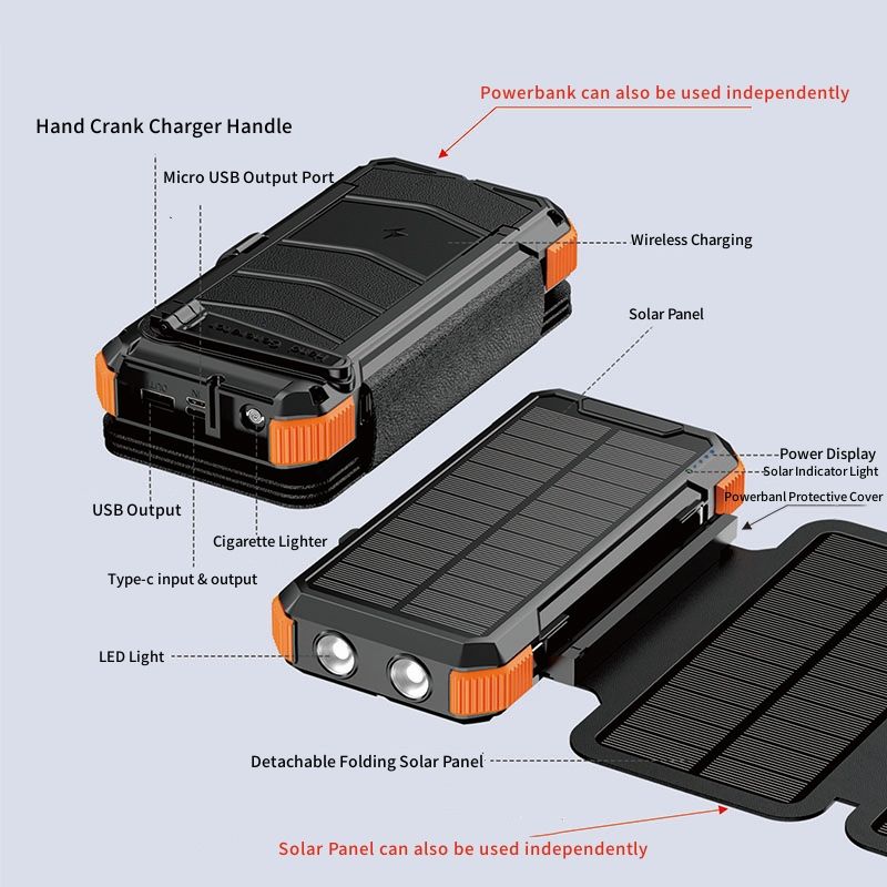 OEM Factory Portable Power Station Rechargeable Emergency SOS Solar Hand Crank USB Phone Charger 20000mAh Power Bank